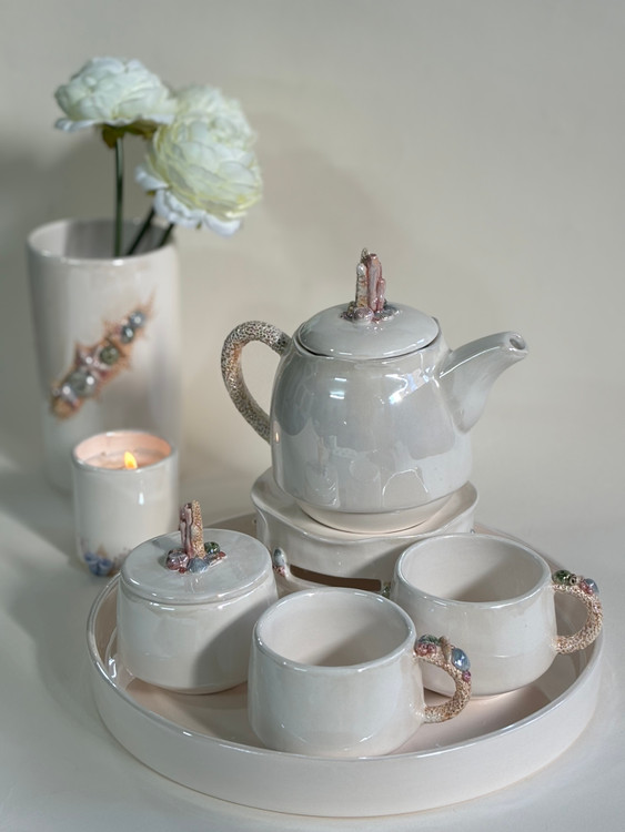 شمع و جا شمعی طرح سرامیکی کار شده با دست طرح دریایی