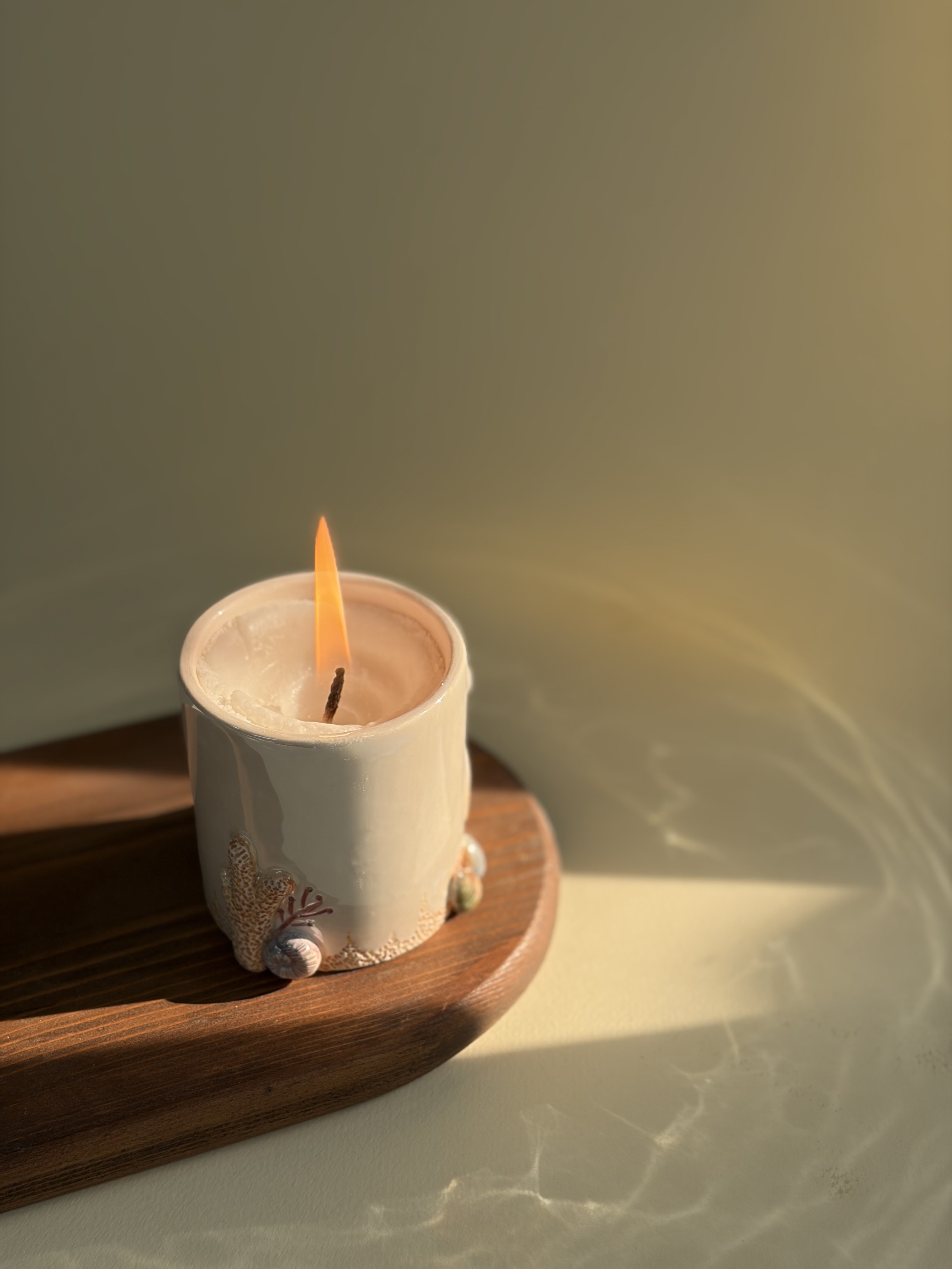 شمع و جا شمعی طرح سرامیکی کار شده با دست طرح دریایی